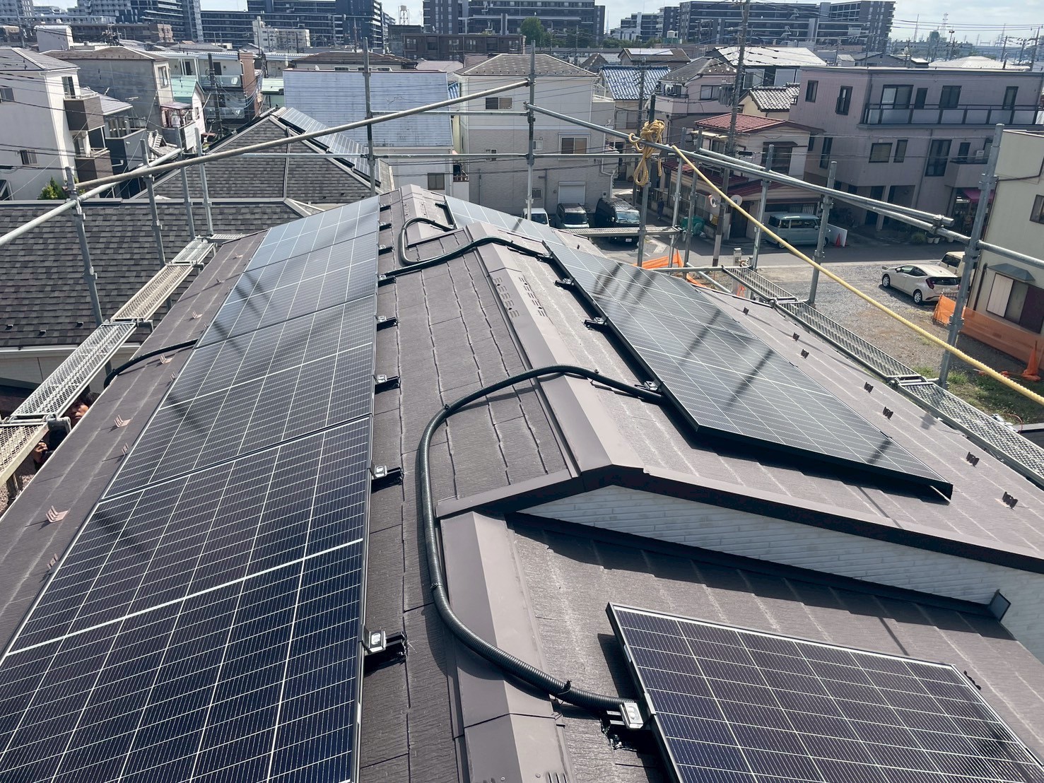 Qcells太陽光パネル6.225kW/オムロン蓄電池9.8kWh(200V全負荷)システム導入/工事期間2日間/蓄電池は屋内設置
